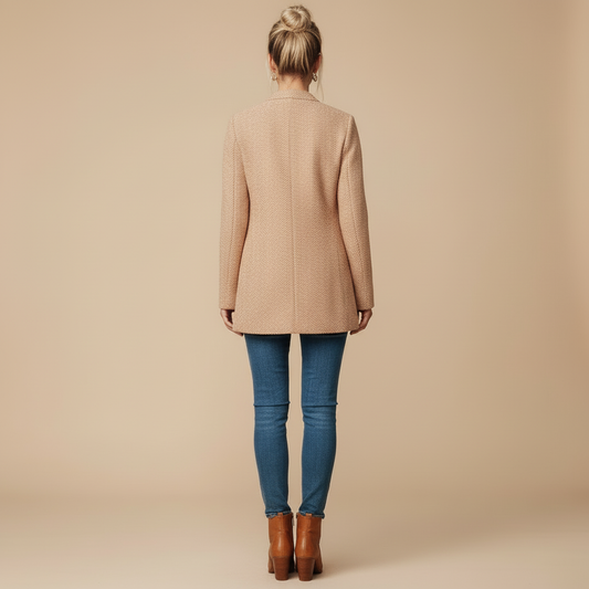 Missy™ | Damer Dobbelt Radet Uldblazerkåbe Med Strikkede Ærmer Og Reverskrave | Kort Overgangsjakke Til Efterår I Casual-Chic Stil