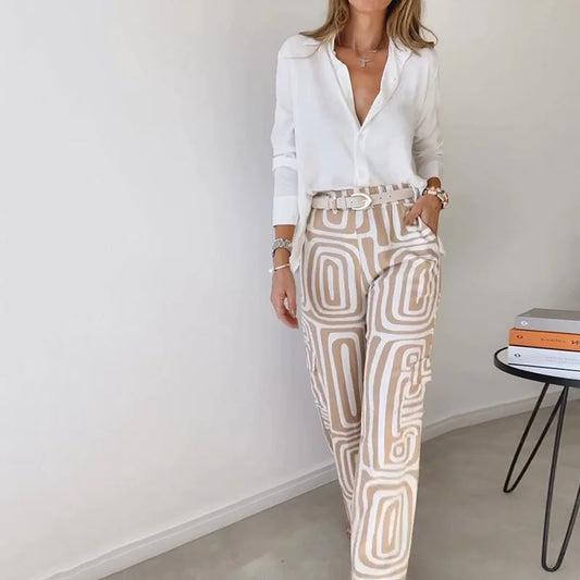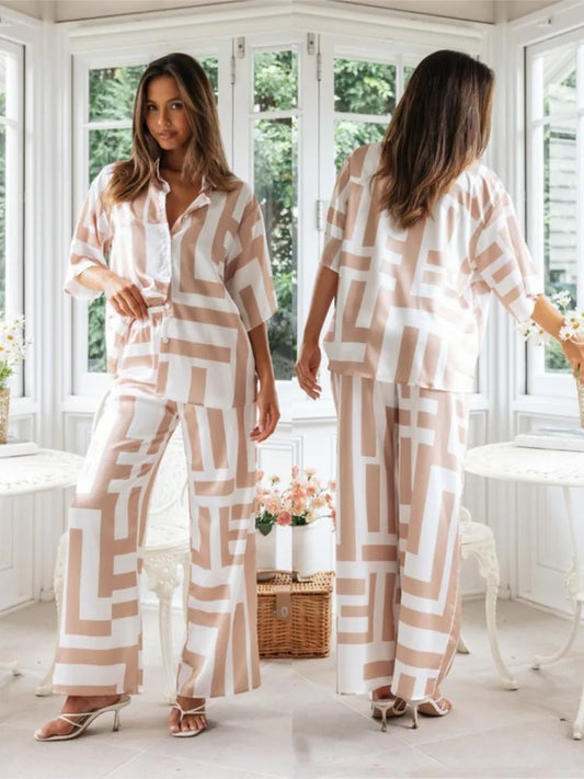 Paloma™ | Damer Boheme To-delt Sæt | Let Bluse & Vide Bukser med Kaktusprint