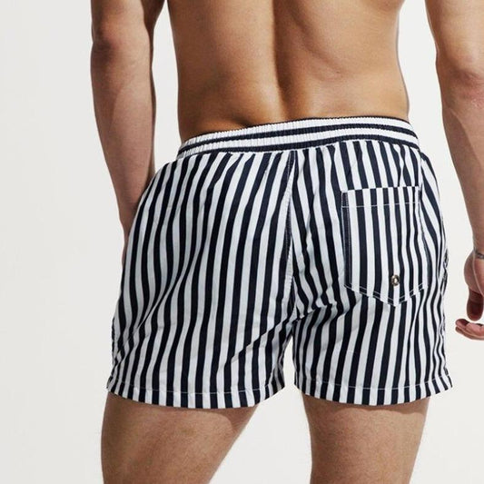 Santino™ | Herrer Stribede Badebukser Sort-Hvid | Sporty Hurtigttørrende Badeshorts med Vertikale Striber
