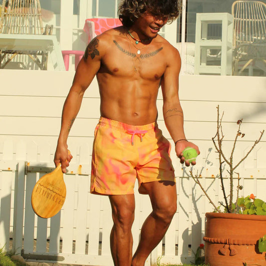 Lazaro | Herrer Badebukser med Tropisk Ananasprint | Hurtigttørrende Badeshorts med Snøre og Sidelommer