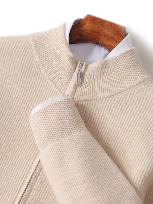 Xavier™ | Herre Merinould Kashmir Cardigan | Luksus Ribstrikket Uldvest med Lynlås