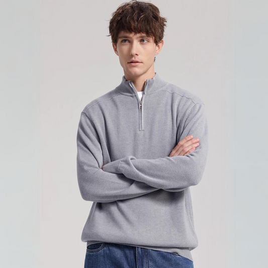Marcéon™ | Herre Striktrøje med Half-Zip | Stilfuld Pullover med Ståkrave og Fin Strikkestruktur