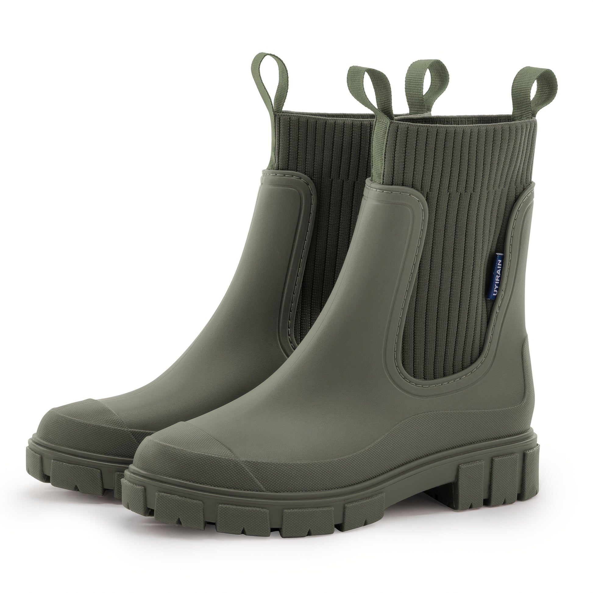 Amira Chunky Gummistøvler kombinerer et vandtæt design med en trendy chunky sål. Takket være det slidstærke gummi og de ribstrikkede elastiske indsatser er de både praktiske og moderigtige – ideelle at bruge i vådt vejr eller som et urban fashion statement.