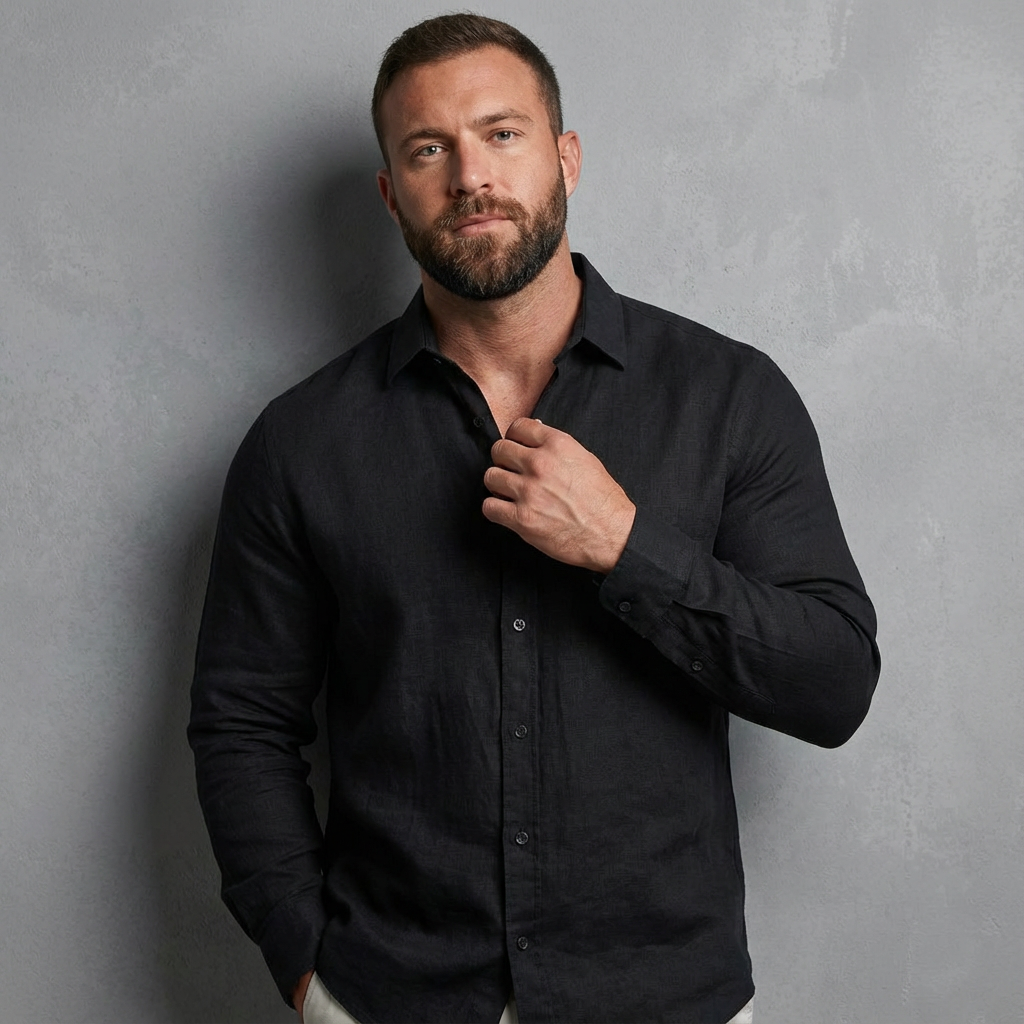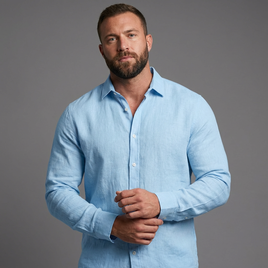 Oplev ultimativ sommerkomfort med denne luksuriøse hørskjorte til herrer. Det åndbare og lette stof holder dig kølig på varme dage, mens den klassiske knaplukning og den subtile, figursyede pasform skaber et raffineret udtryk. Brug den åben over en T-shirt for et afslappet look eller lukket for et smart-casual outfit – ideel til både stranden og en aften ude.