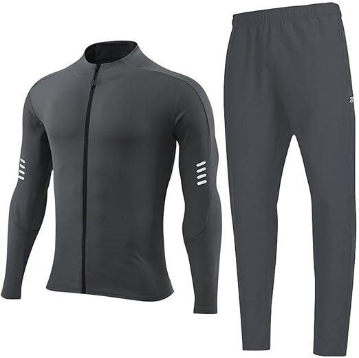 Med dette sporty træningssæt er du klar til enhver workout. Kombinationen af en tætsiddende sportsjakke og matchende bukser giver et moderne, slankt look. Det åndbare og strækbare materiale sikrer ultimativ komfort, mens de reflekterende detaljer giver ekstra sikkerhed, når du løber i mørket.