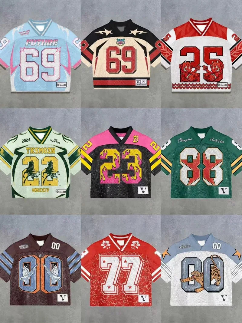 Farvel til kedelige T-shirts. Denne cropped football jersey bringer stadionstemningen ud på gaden – med et råt, urbant twist. Det luftige meshmateriale, de markante rygnumre og den vintage sportsæstetik gør den til det perfekte valg til festivaler, streetstyle eller bare når dit outfit har brug for lidt ekstra attitude.