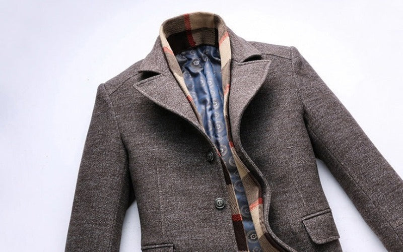 Laurence™ | Mænd Vindtæt Uldfrakke med Raffineret Tørklæde