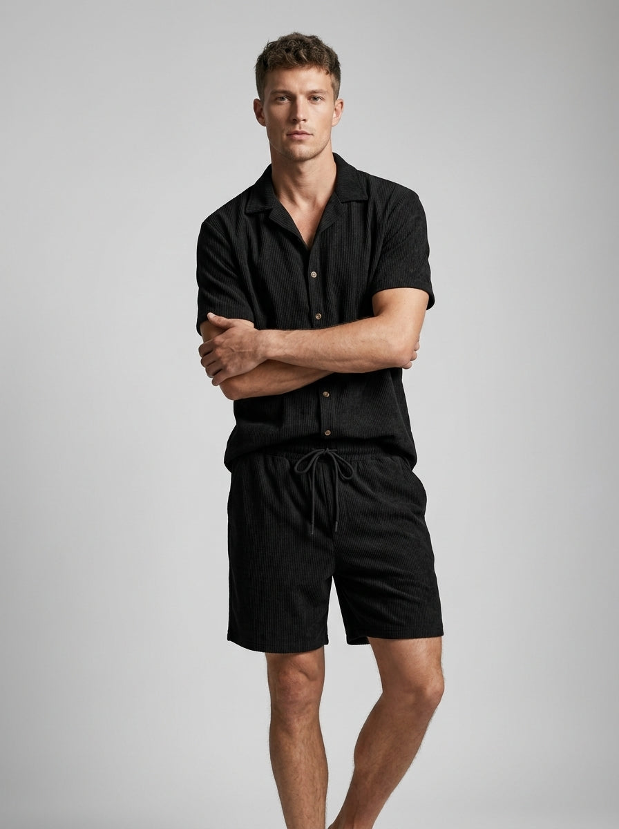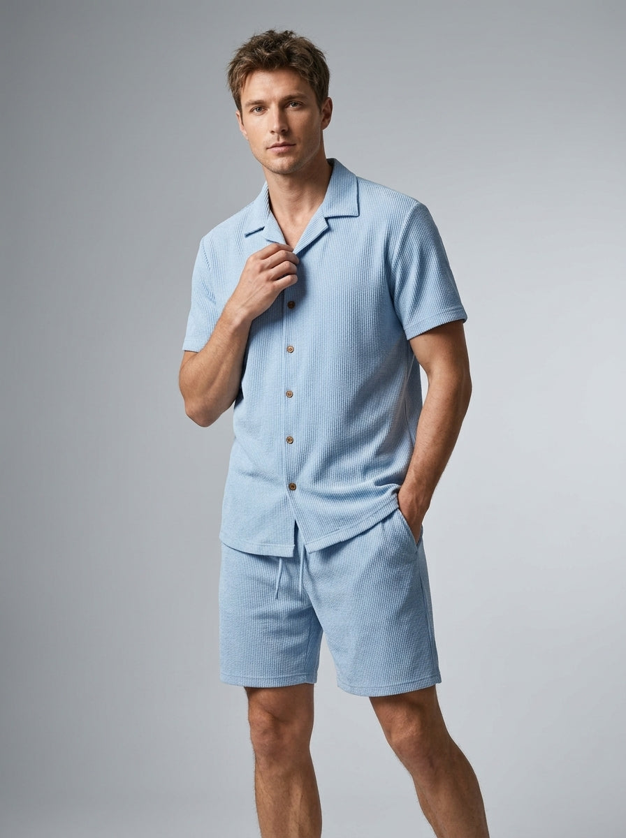 Hvorfor vælge mellem komfort og stil, når du kan få begge dele? Dette sæt er ideelt til mænd, der gerne vil se godt ud uden at være overdressed. Ingen sidste-øjebliks outfitstress – bare tag det på, og du er klar. Men skynd dig: sæt som dette bliver hurtigt udsolgt, når solen begynder at skinne.