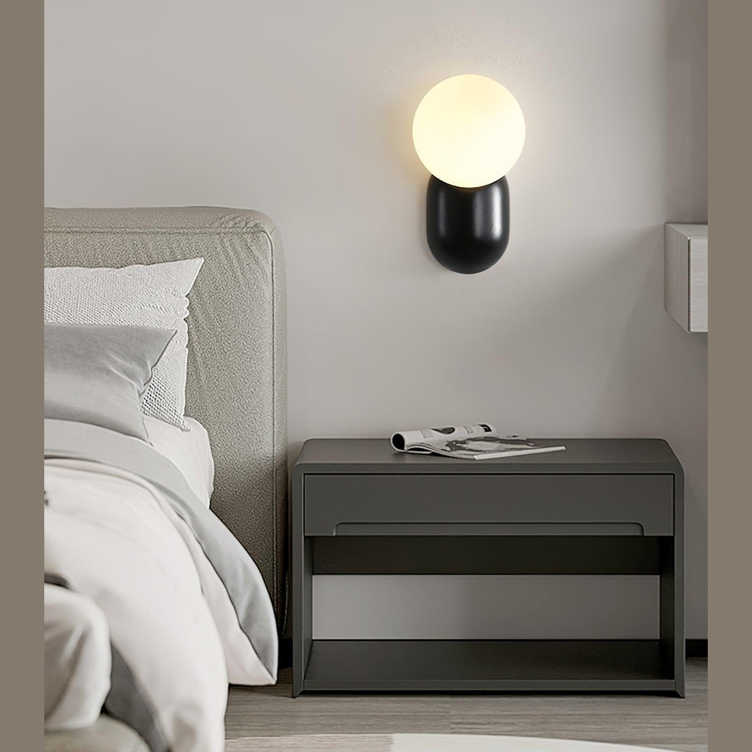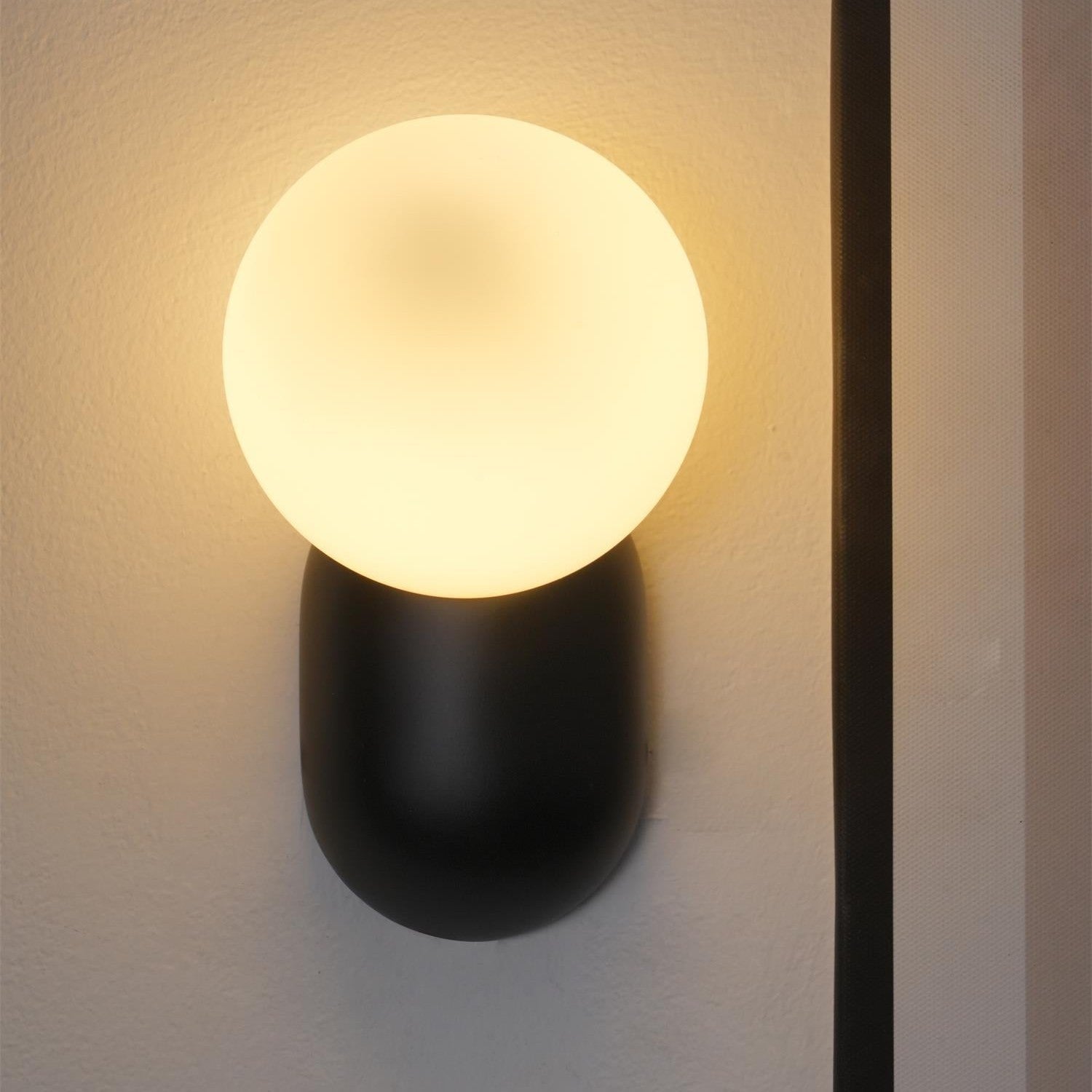 ✔ Mat sort vægbeslag og opalhvid glas-kuppel – minimalistisk og tidløst