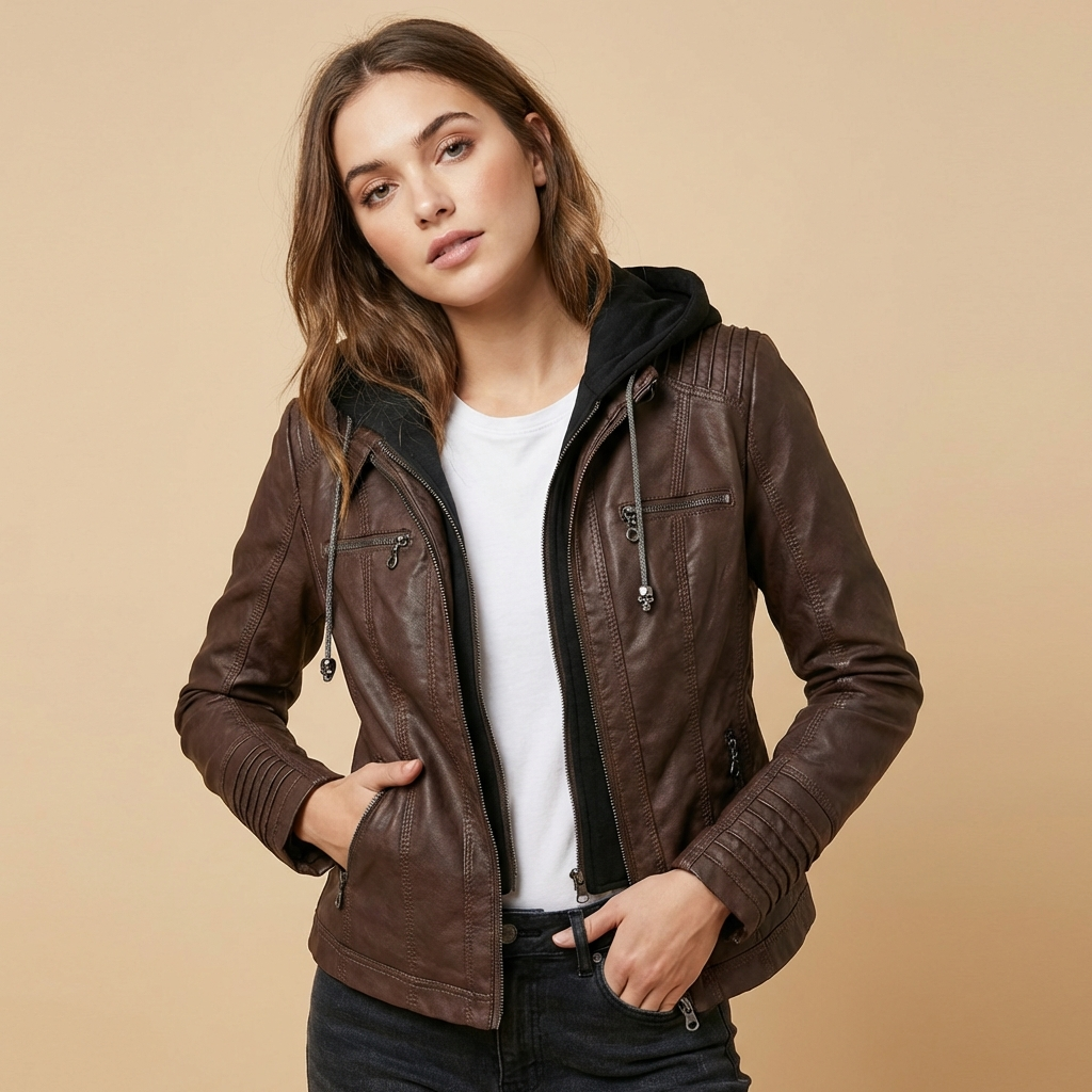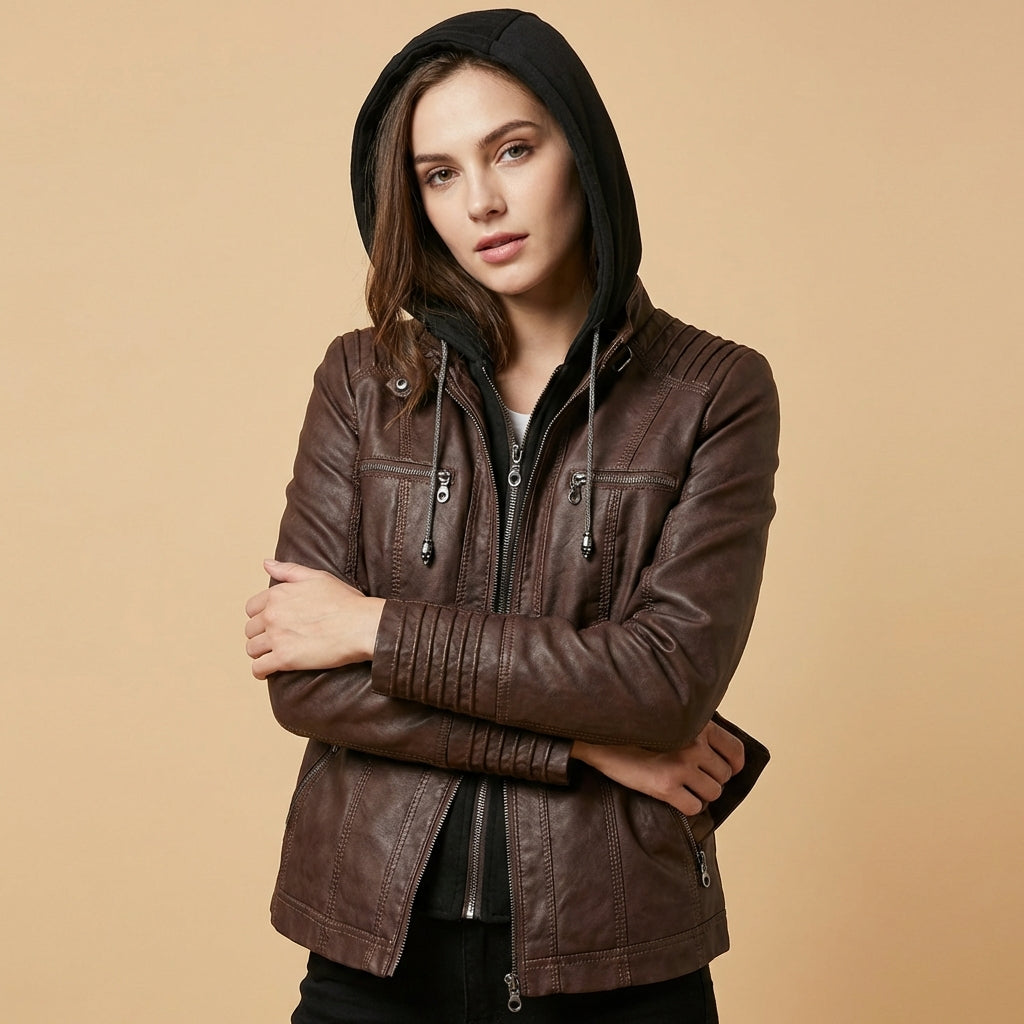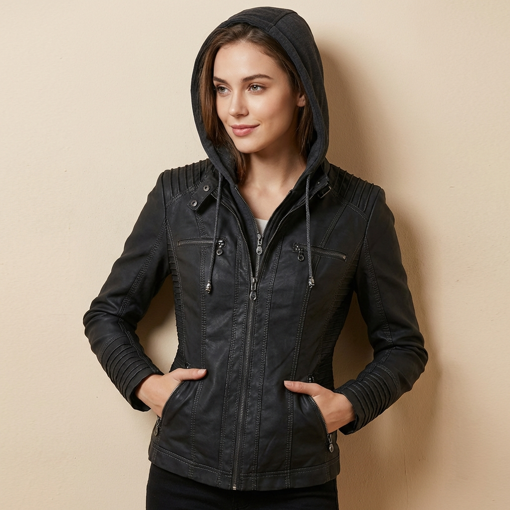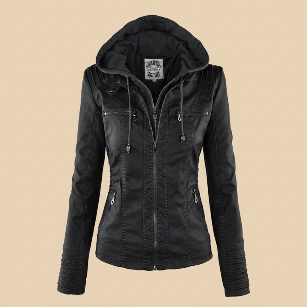 Denne figursyede jakke er designet til et selvsikkert, urbant udtryk, hvor form og detaljer er i fokus. Den tætsiddende pasform fremhæver silhuetten, mens hætten og de flere lynlåse skaber et markant streetwear-inspireret look. Et statement-item, der passer perfekt til casual streetwear og hverdagsoutfits med karakter.