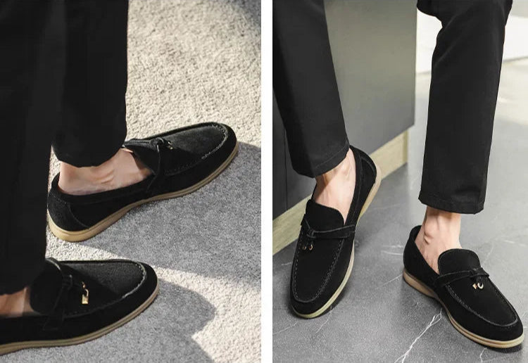 Leder du efter sko, der udstråler klasse uden at gå på kompromis med komfort? Disse ruskinds loafers er et must-have for den moderne mand. Med deres fløjlsbløde tekstur, minimalistiske design og stilrene duskedetalje løfter de enhver outfit – fra smart-casual til sommer-elegant. Ideel til dig, der søger luksuriøs enkelhed til daglig brug.