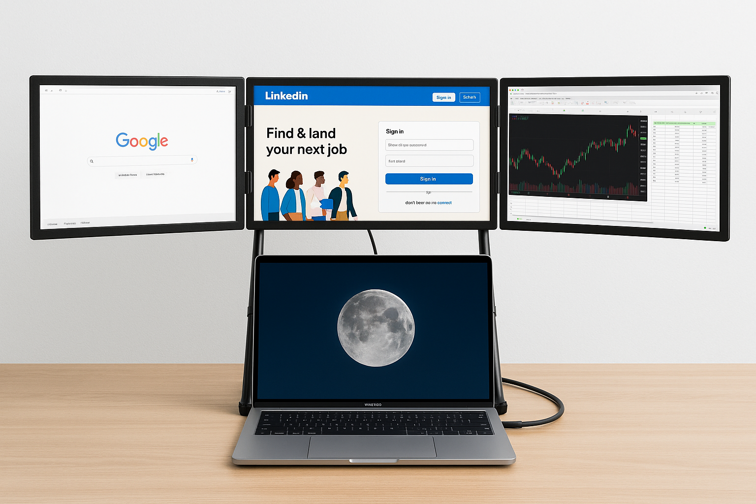 TriScreen Pro™ | Triple Skærmudvidelse til Bærbar | Innovativ Triple Screen Setup til Multitasking og Hjemmearbejde