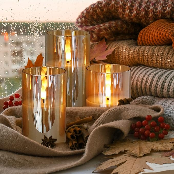 Vil du skabe øjeblikkelig hygge uden besvær med ild eller stearin? Dette sæt med tre LED-lys i elegant røgfarvet glas spreder en varm, flimrende glød i dit hjem – sikkert, bæredygtigt og stilfuldt. De bløde flammer ser realistiske ud, og det semitransparente glas filtrerer lyset på subtil vis. Med fjernbetjening og timerfunktion får du maksimal komfort.