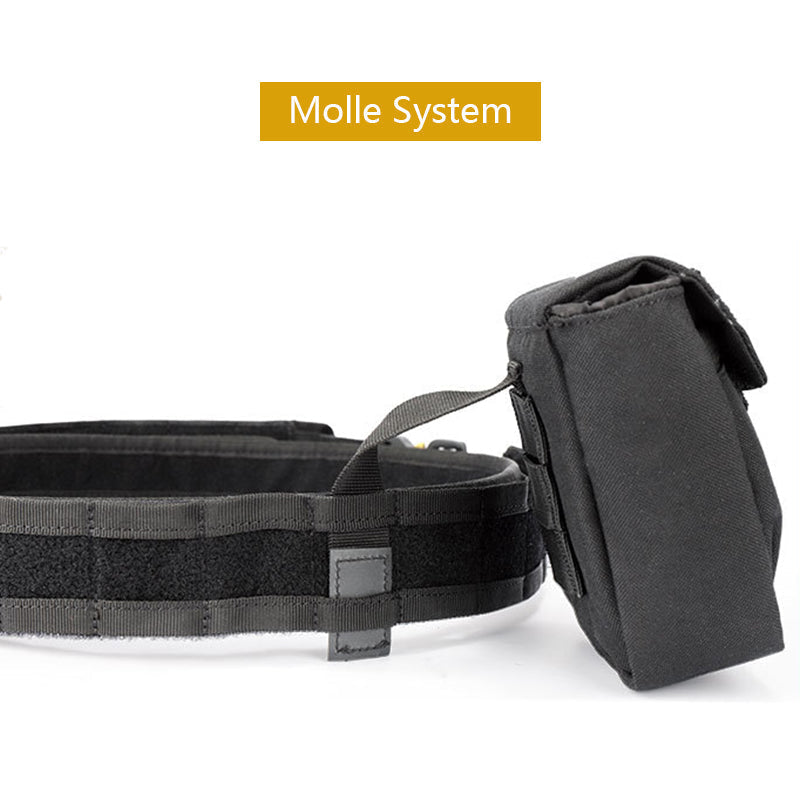Veyron Tactical Bælte er fremstillet af stærkt nylon og udstyret med flere aftagelige pouches til magasiner, multitools eller outdoor-udstyr. Takket være MOLLE-systemet er bæltet fuldt modulært og nemt at udvide med ekstra tilbehør. Quick release spændet sikrer hurtig betjening og en solid lukning – ideelt til intensivt brug.